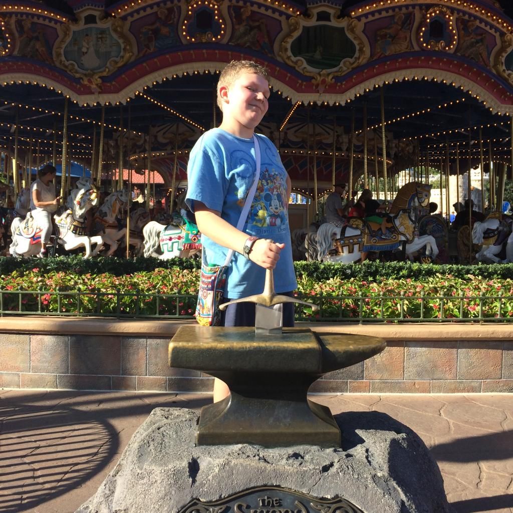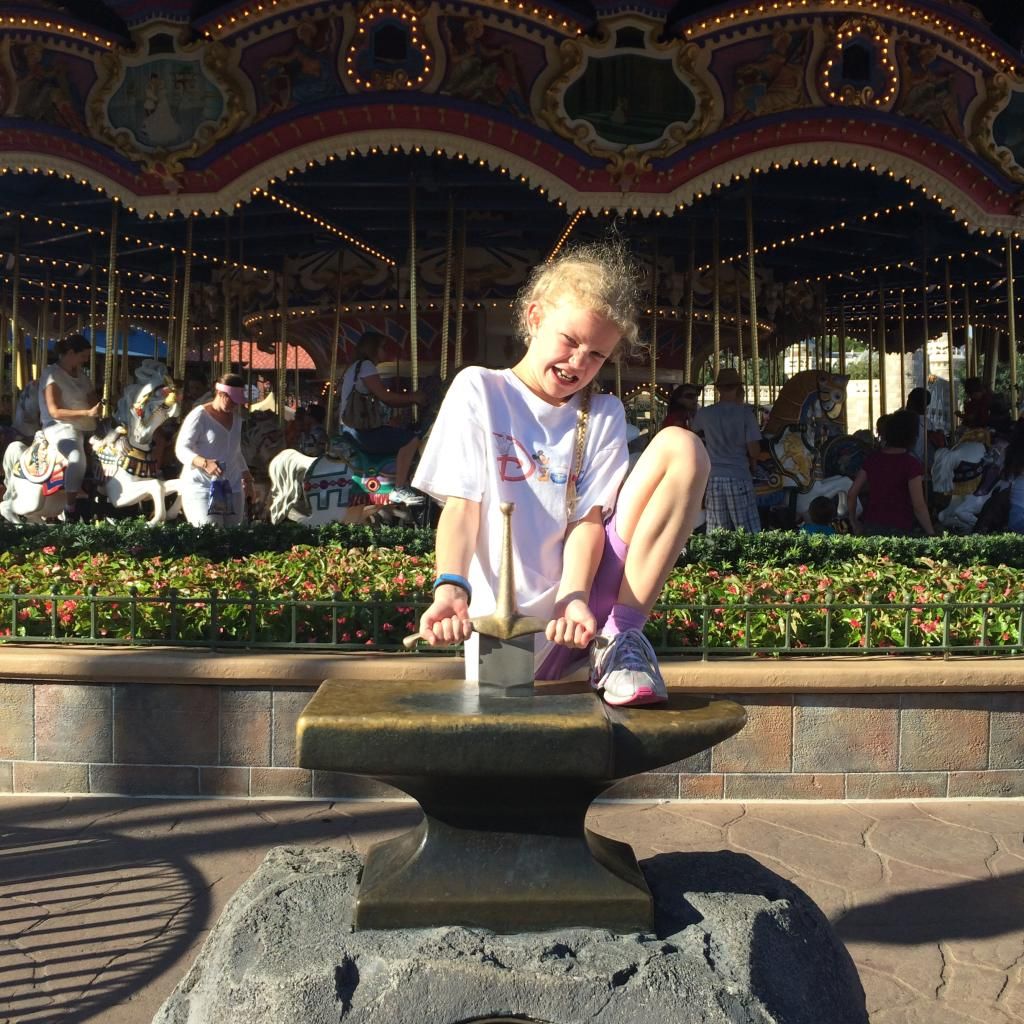 After the carousel, the offspring attempted to pull the sword from the stone.
