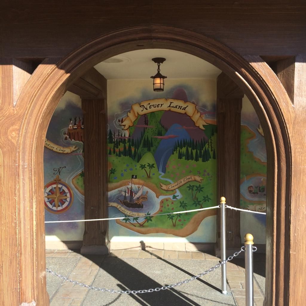 The bulk of our touring on Tuesday had been in TomorrowLand and FantasyLand. Today was scheduled to be in AdventureLand. We headed there. I had not told the offspring, but I was hoping to catch Peter Pan at his new Meet and Greet spot. My 19yo likes Peter Pan even more than Gaston.
