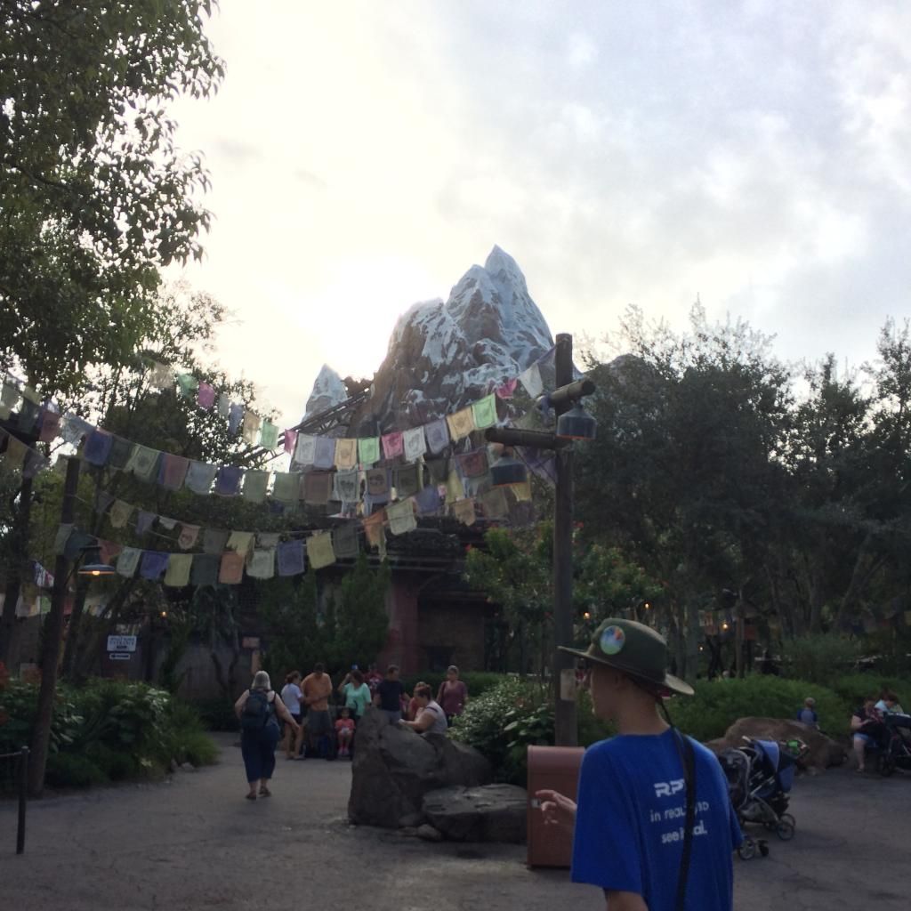 Once at Animal Kingdom, I made my way to Guest Services. I wanted to make sure everything was good with our tickets we had gotten through the Disney Student Seminars program. Also, I had one day left on my 4 day hopper from January which would expire 09/28/14. It was important to our touring that I use that ticket that day so I would still have 3 days left on my Disney Student Seminar ticket. The kids had four day hoppers so everything should work out fine. (Foreshadowing!) The cast member said we were good to go, so we hightailed it to Expedition Everest, downing Sausage Muffins on the way. The plan had been to eat those waiting for rope drop, but because of the bus delay, we had just missed it. I was a little worried, taking everyone on a huge roller coaster right after eating, but thought empty stomachs might be worse.
